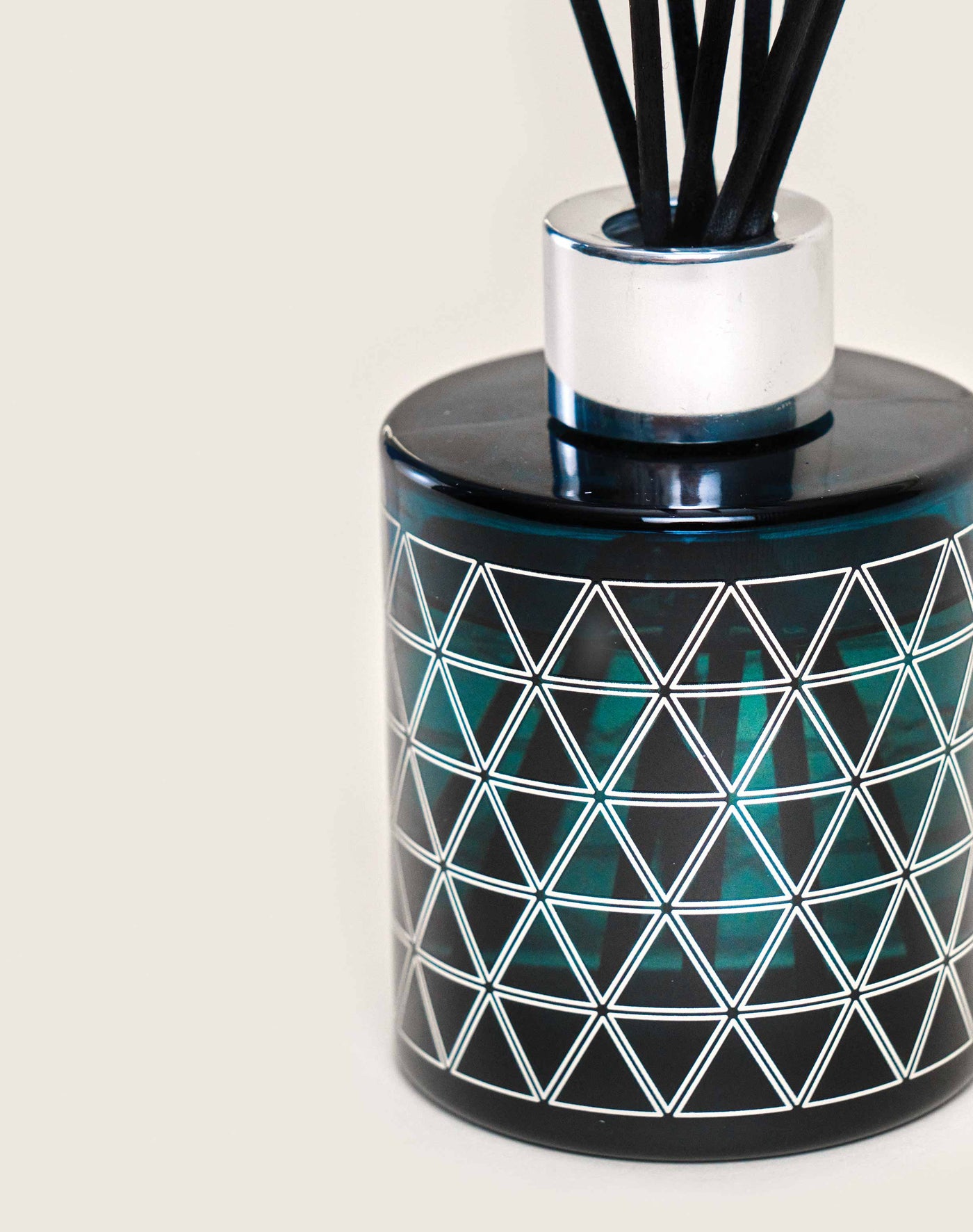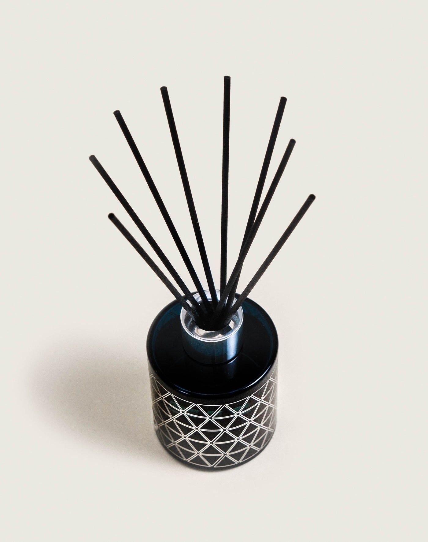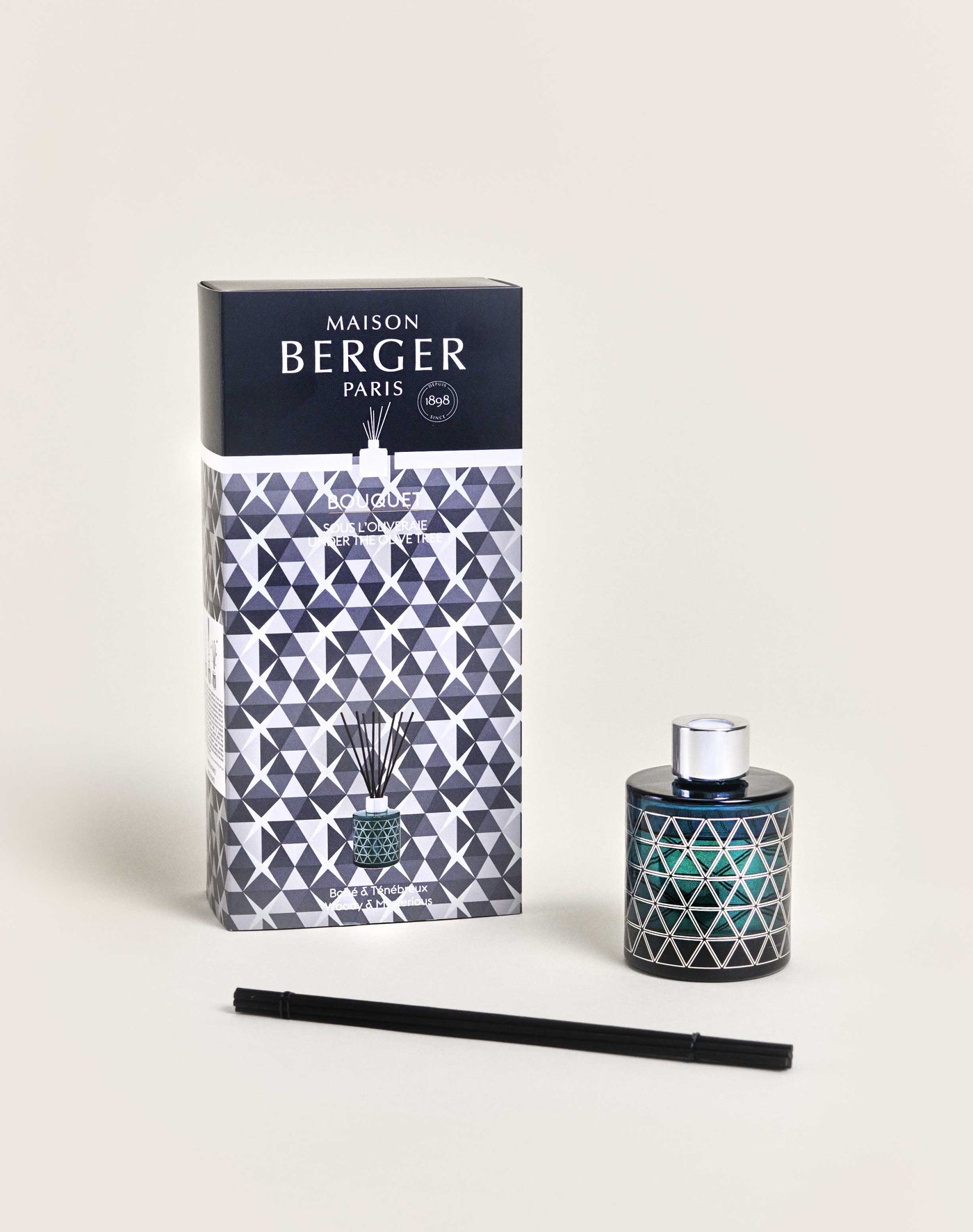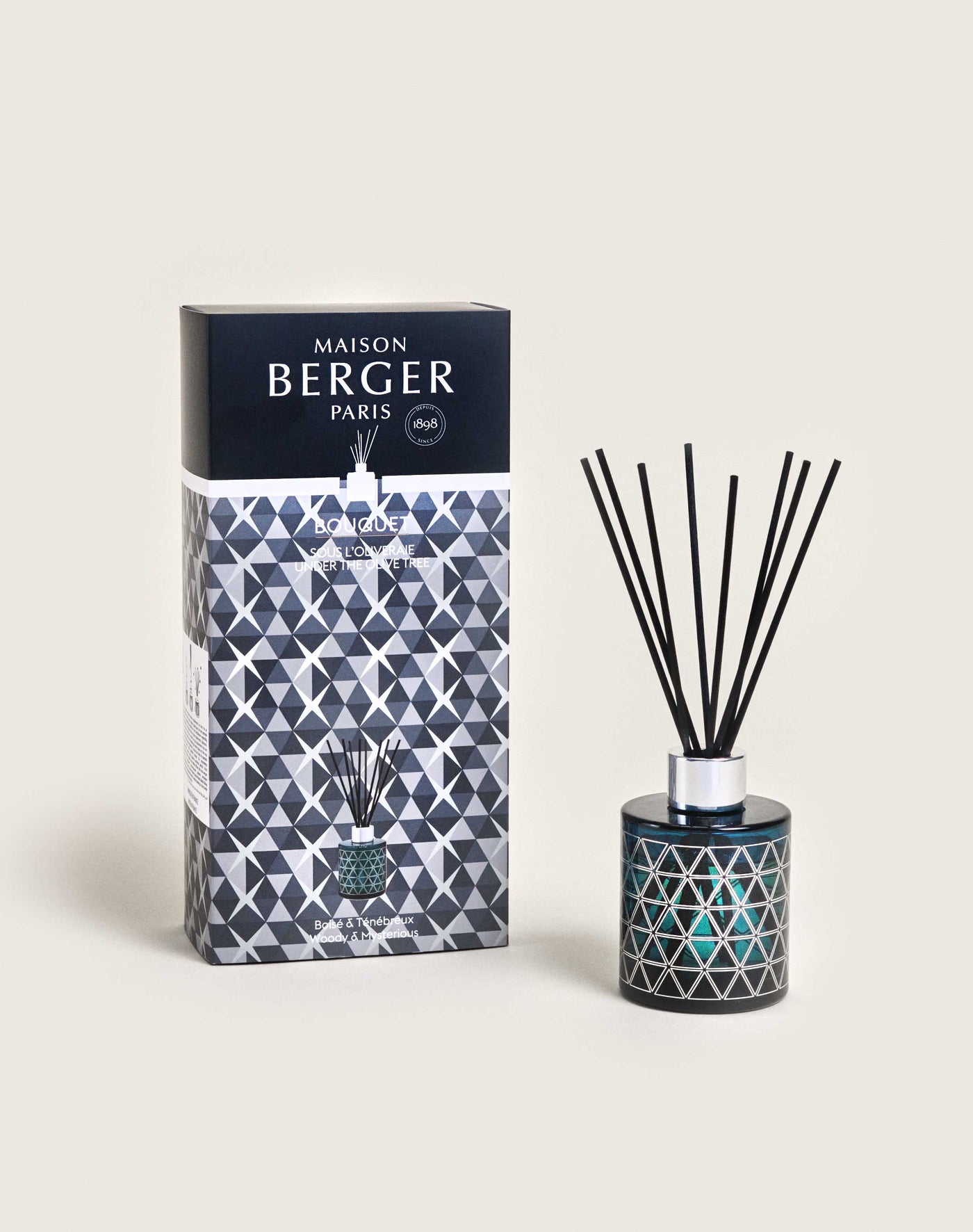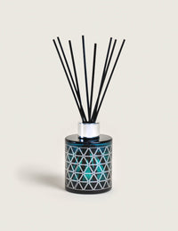 Deze parfumverspreider Géode Bleu heeft de kenmerken van de hele collectie, gebaseerd op geometrie. Deze is terug te vinden op het door Armand Delsol ontworpen object, met name in de gezeefdrukte motieven. De zilveren kleur past mooi bij die van de metalen ring en samen vormen zij een mooi contrast met de blauwe lak van het glas. Met zijn decoratieve charme benadrukt hij de stijl van uw vertrek, waardoor uw interieur aan glamour en elegantie wint. Plaats de sticks in de parfumverspreider Géode Bleu om optimaal van het houtachtige, melancholische huisparfum van Sous l’Oliveraie te genieten. De harsachtige parfumnoten van aloëhout en olijfboom komen extra mooi uit dankzij een chypré basisnoot van patchouli en vormen zo samen een zeer verleidelijke parfumcompositie. De warme, fascinerende aroma's van de Provençaalse garrigue worden op subtiele wijze in de atmosfeer verspreid. U waant uzelf te midden van mediterrane landschappen, langs kleine paadjes.
